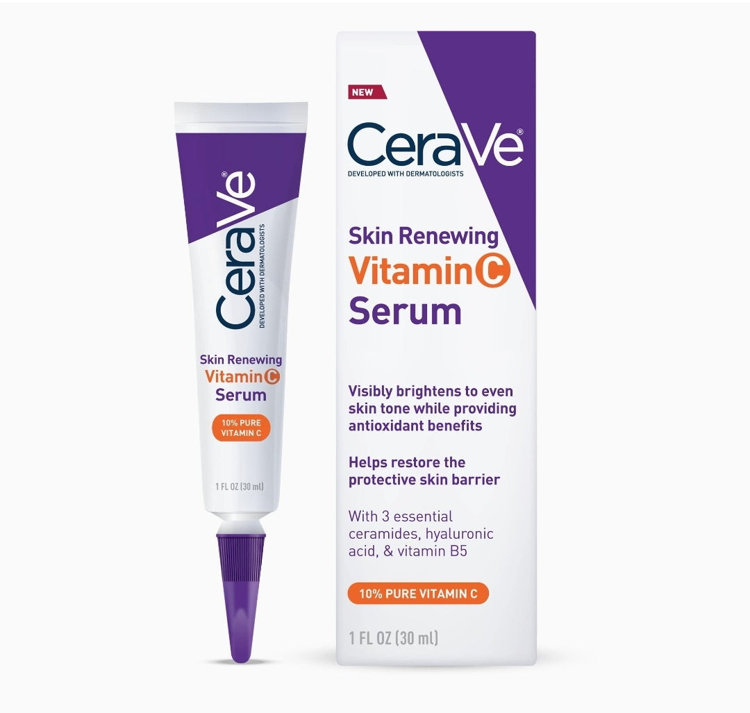 Developed with dermatologists, CeraVe Vitamin C Serum visibly brightens & helps to restore the protective skin barrier. Potent antioxidant L-Ascorbic acid (the purest form of vitamin C) helps to even skin tone & continuously brighten while helping to defend against free radicals & provide antioxidant benefits. Gentle, lightweight formula helps restore the protective skin barrier & improve hydration, leaving skin soft, radiant, & healthy-looking.