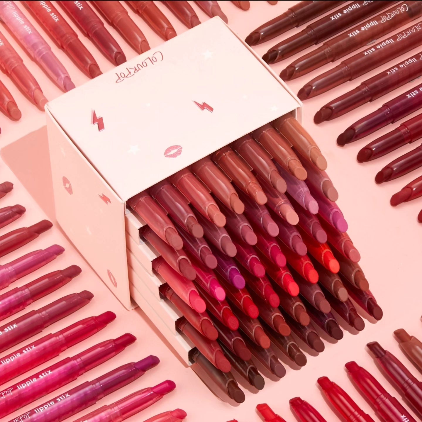 👄 What it is – We’ve rounded up 48 of our iconic Lippie Stix shades to become your new faves. This 100% vegan collection has every colour you’ll ever need, from warm brown nude and peachy pink to dusty coral and crimson red!