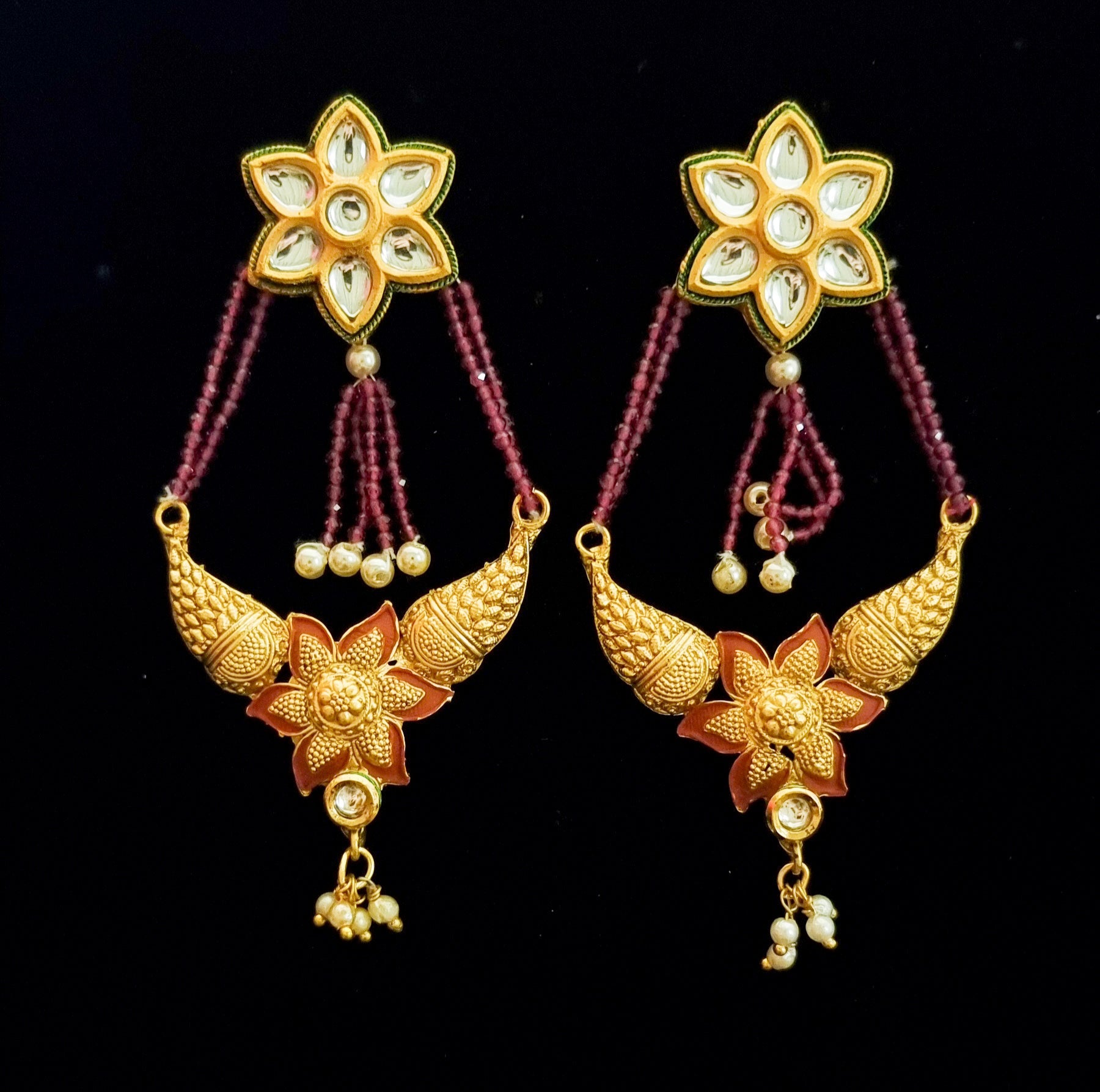 Kundan gold plated jhumar style earrings.