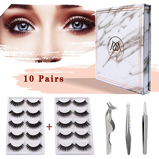 3D Handmade False Eyelashes Set for Natural Look with False Lashes Applicator,Eyebrows Tweezer and Double Eyelid Stickers