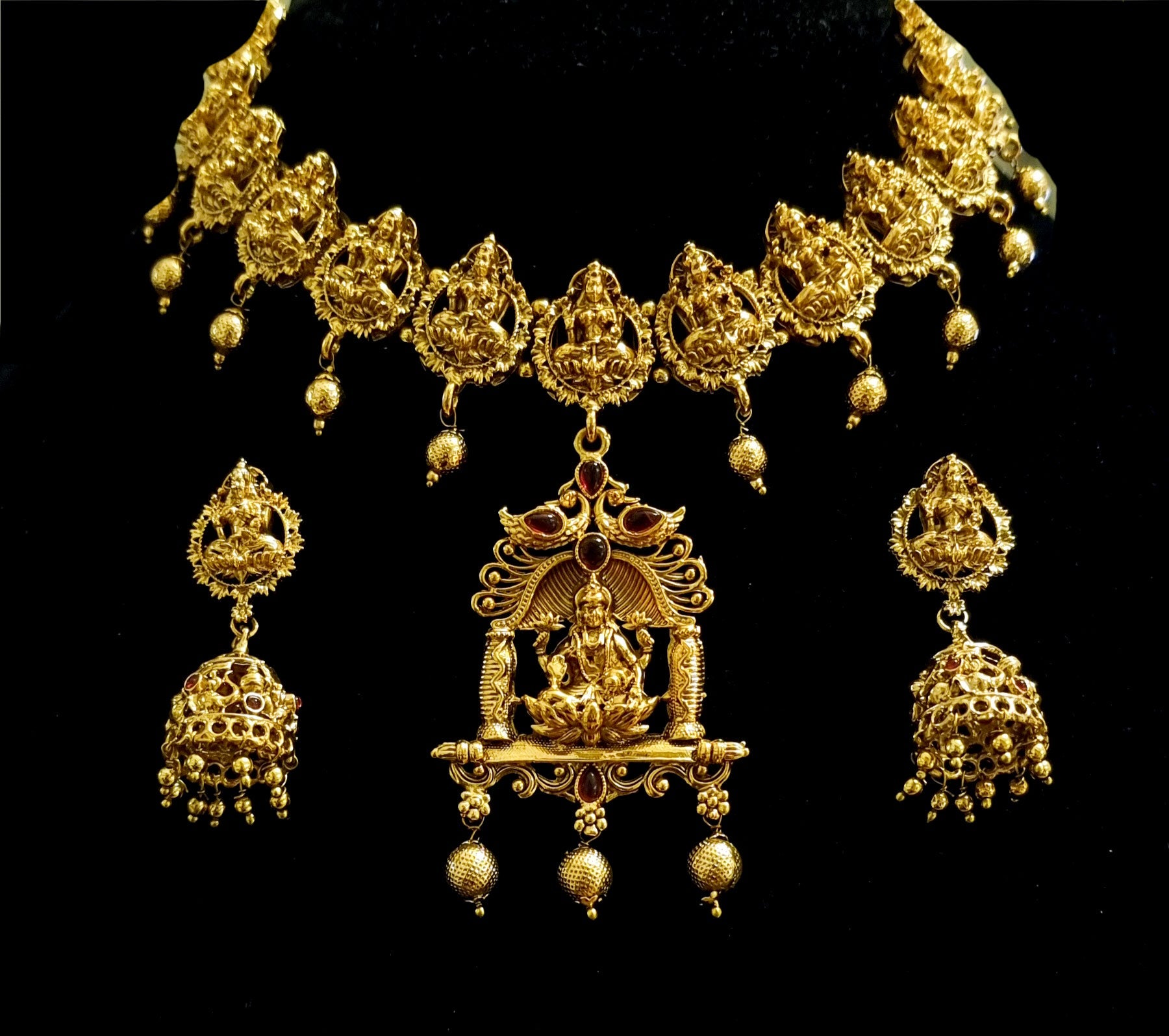 Matte finish gold plated goddess necklace with earrings.