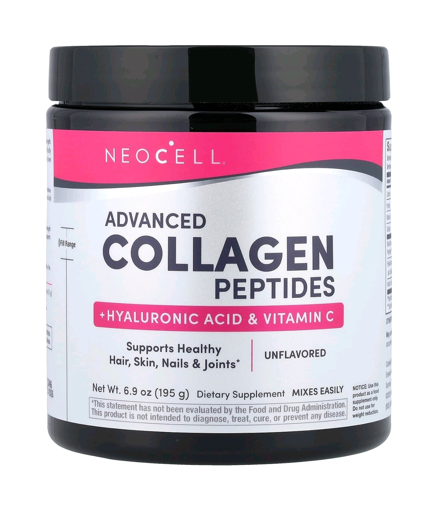 HYDROLYZED COLLAGEN: NeoCell uses an advanced manufacturing process called hydrolysis that converts large collagen molecules into small peptides that may become bioavailable in the body
