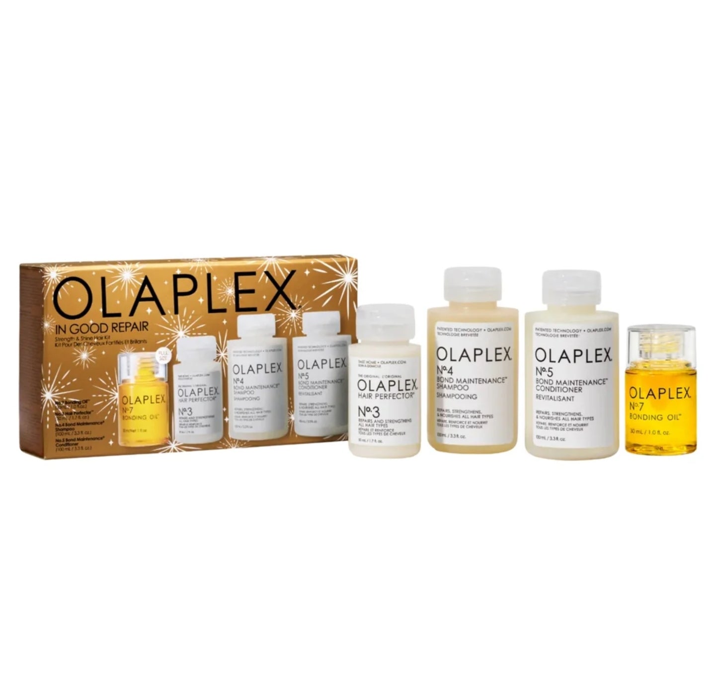 This perfectly giftable routine of four OLAPLEX® top sellers will keep any hair type shining with health. Includes a full-sized, shine-boosting OLAPLEX Nº.7 and a starter-sized Nº.3, the iconic repair treatment powered by the complete bond builder for immediately stronger, visibly healthier hair.