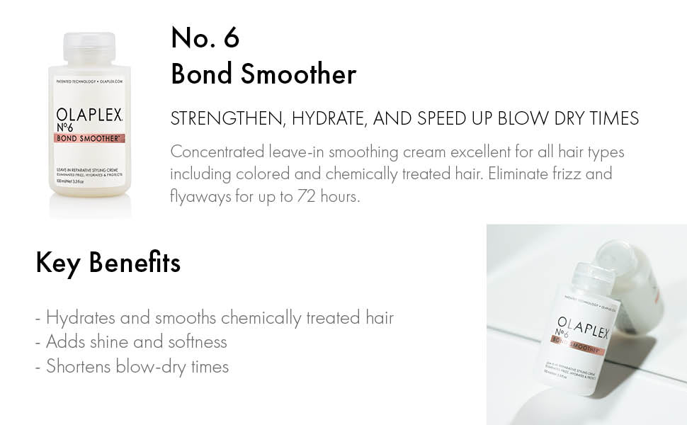 Have you noticed your hair become dry, brittle and elastic since you began bleaching, perming or heat-styling? Let us introduce you to OLAPLEX. Starring a patented active ingredient that works on a molecular level, OLAPLEX formulas seek out broken bonds in the hair (which are caused by chemical, thermal and mechanical damage) and repair them, restoring compromised hair to former glory. Previously only available in salons, the OLAPLEX No 6 Bond Smoother is a hard-working leave-in reparative styling crème that helps to eliminate frizz, intensely hydrates and protects all hair types.