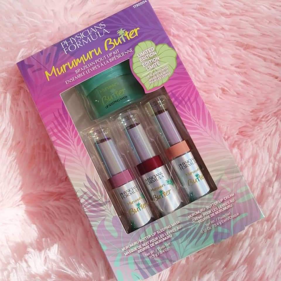Pamper your lips with Physicians Formula murumuru butter Brazilian pout lip kit. Featuring 3 of your favorite. Butter Lip shades and a limited edition butter Lip sleeping mask that provides the ultimate creamy cushion texture to nurture and protect lips. Infused with a powerful blend of murumuru, cupuacu, and Tucuma butters from the lush, nutrient-rich Amazon that softens, conditions, and moisturizes lips.
