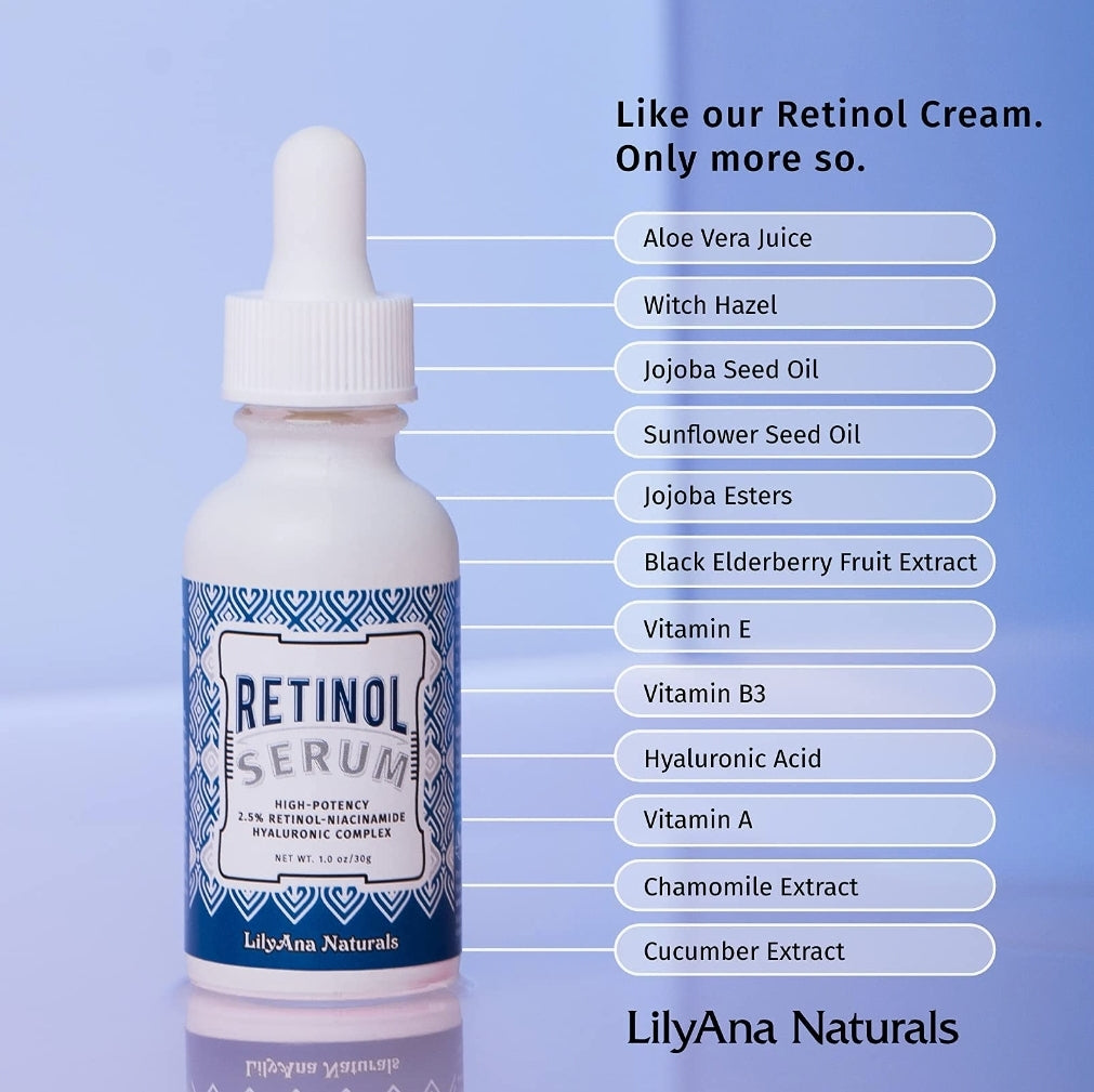 Aqua, Aloe Barbadensis Leaf Juice, Glycerin, Hamamelis Virginiana Water, Niacinamide, Xanthan Gum, Triticum Vulgare Germ Oil, Squalane, Simmondsia Chinensis Seed Oil, Retinol (Vitamin A), Tocopherol (Vitamin E), Tocopheryl Acetate (Vitamin E), Caesalpinia Spinosa Gum (Tara, Botanical Hyaluronic Acid), Camellia Sinensis Leaf Extract, Citrus Paradisi Peel Oil, Cinnamomum Camphora Wood Oil, Boswellia Serrata Oil, Alcohol, Potassium Phosphate, Lecithin, Pentylene Glycol, Sclerotium Gum, Polysorbate 20, Potassium Sorbate, Sodium Benzoate